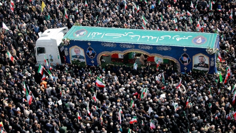 Cenazeye katılan kalabalık, sık sık ABD ve İsrail karşıtı sloganlar attı.