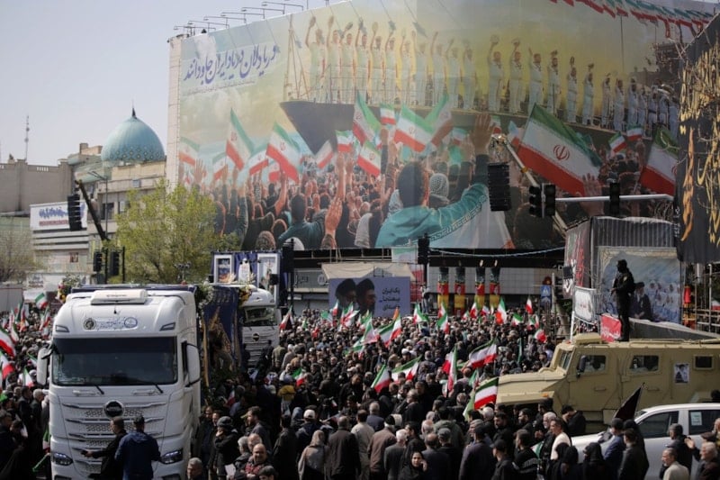 Başkent Tahran, İsrail ve ABD saldırılarında hayatını kaybeden üst düzey isimlerden Ali Laricani ve Gulam Rıza Süleymani ile birlikte vurulan gemide can veren askerler için düzenlenen cenaze törenine sahne oldu.