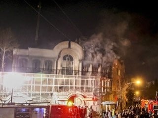 Protesto gösterileri sırasında göstericilerin, konsolosluktaki Suudi Arabistan bayrağını indirerek binanın bir kısmını ateşe verdiği ve camlarını kırdığı ileri sürüldü.