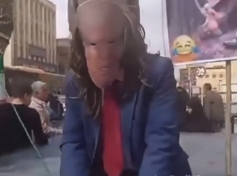 İran'da bir meydanda düzenlenen gösteride, ABD başkanı Donald Trump'ın elleri bağlı haldeyken kılıçla kafasının koparıldığı bir oyun canlandırıldı.