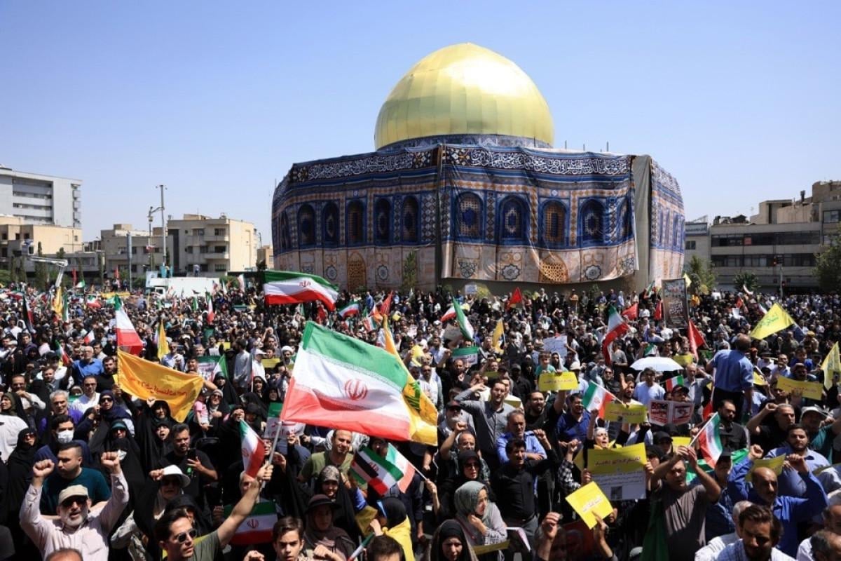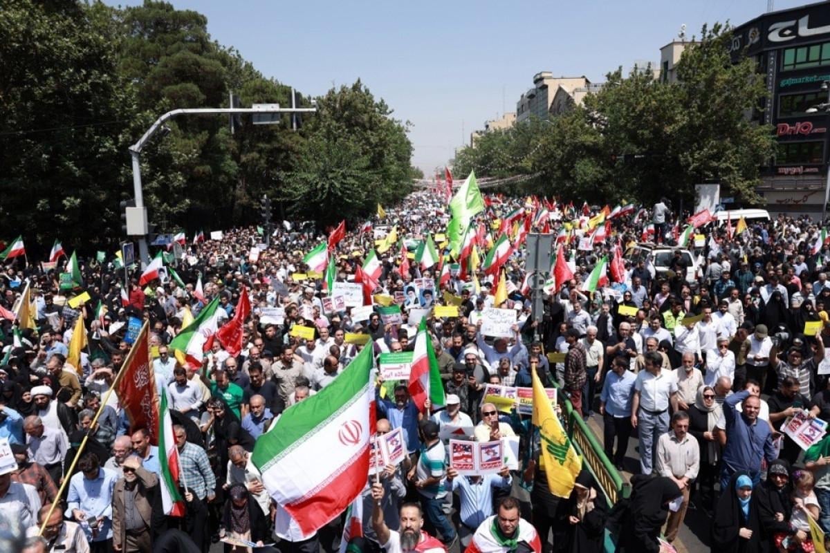 Tahran Üniversitesi'nde kılınan cuma namazının ardından yüz binlerce kişi, İsrail ve ABD karşıtı protesto gösterisi düzenledi.