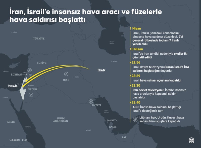 İsrail tarafından yapılan açıklamalara göre İran tarafından düzinelerce İHA ile saldırı başlatıldı.