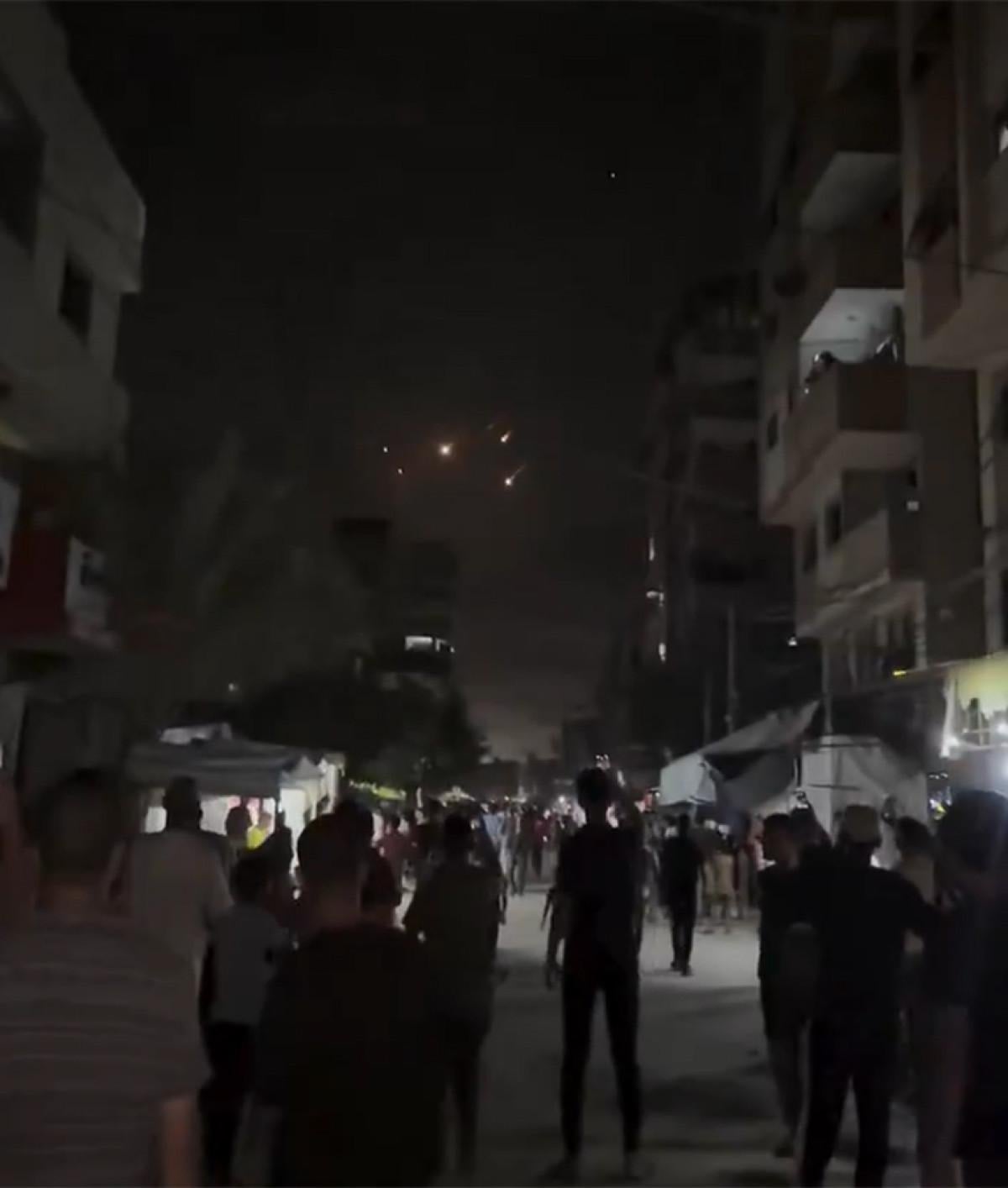 Füzelerin gökyüzünden süzülerek İsrail topraklarına düştüğü anlarda sokaklara dökülen Gazzeliler büyük sevinç yaşadı.