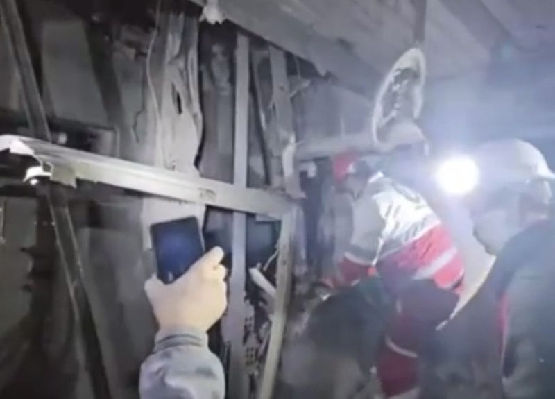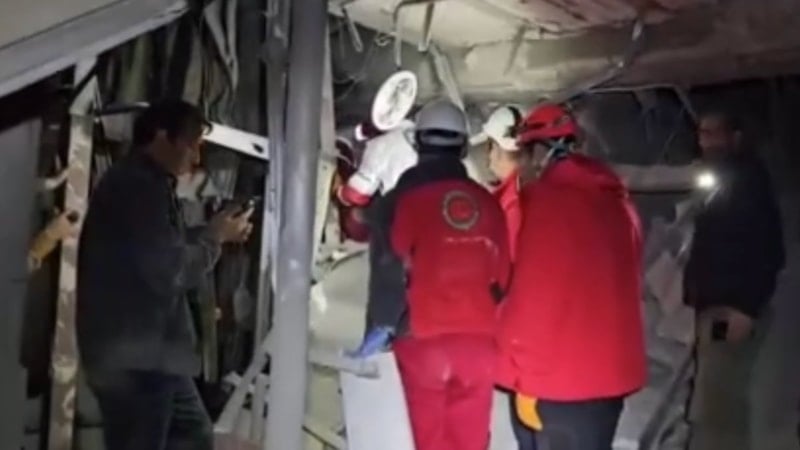 Paylaşılan görüntülerde bir binanın ciddi şekilde hasar aldığı ve ekiplerin arama kurtarma çalışması yürüttüğü görüldü.