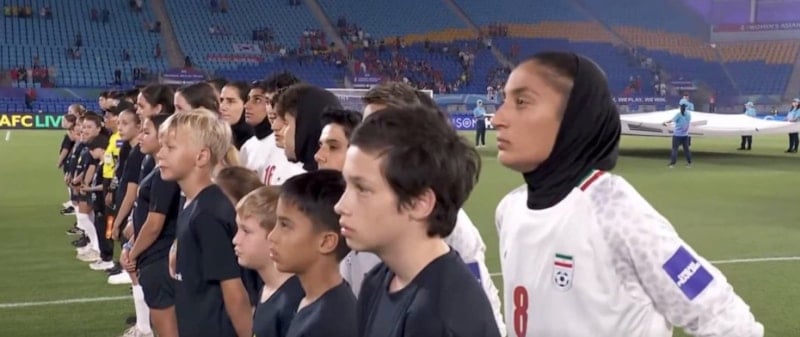 Avustralya’da düzenlenen Kadınlar Asya Kupası’na katılan İran Milli Kadın Futbol Takımı oyuncuları, oynadıkları bir maç öncesinde İran milli marşı okunurken sessiz kalmış ve bu durum İran’da tepkiyle karşılanmıştı. Daha sonraki maçlarda milli marşı okuyan futbolcular, son karşılaşmanın ardından güvenlik endişelerini dile getirerek yetkililerden koruma talep etmişti.