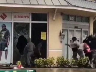 Miami'de bir grup yağmacı, boşalan marketin camlarını kırarak içeri girdi, ardından koli koli malzemeleri çıkartarak geldikleri araçların içerisine doldurdu. Polise yakalanmamak için hızla işlerini tamamlamaya çalıştılar.