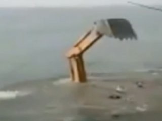 Ancak duba, kepçenin ağırlığına dayanamayıp yan yattı. Bunun üzerine iş makinesinin operatörü kepçeyi kıyıya doğru çevirince dengeler iyice bozuldu ve iş makinesi suya gömüldü. İşte o anlar: