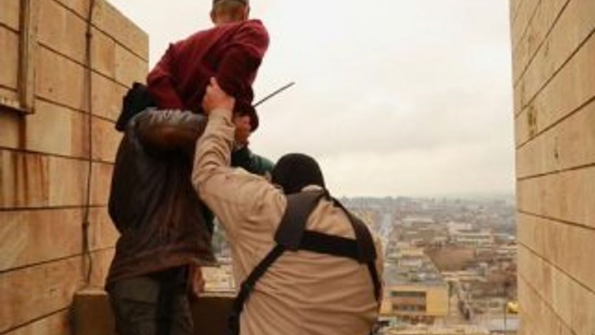 IŞİD'in iki kişinin ellerini ve gözlerini bağlayarak yüksek bir binadan atmasını meydanda yüzlerce kişi izledi.