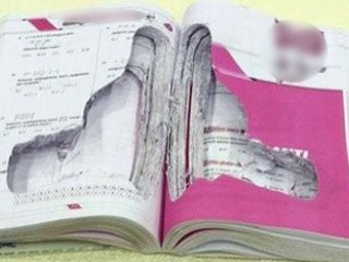 Silah zulası olarak kullanılmak üzere orta sayfaları tabanca şeklinde kesilerek oyulmuş test kitabı dikkat çekti