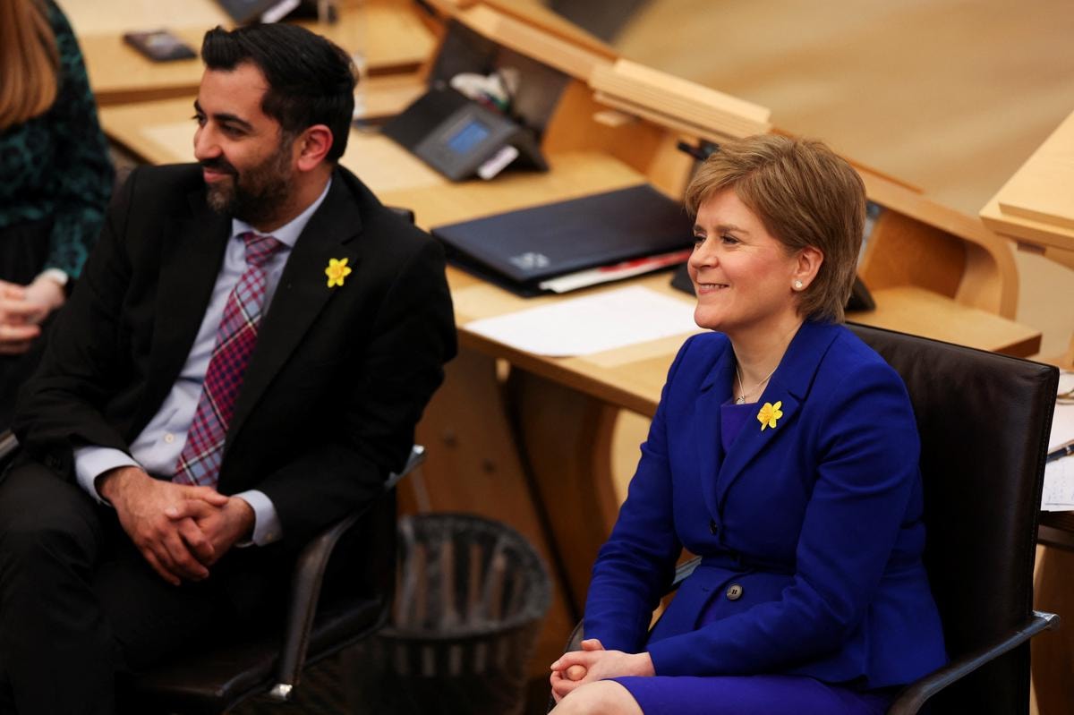 İskoçya Bölgesel Başbakanı ve SNP Genel Başkanı Nicola Sturgeon'ın hem başbakanlıktan hem de parti genel başkanlığından istifası sonrası başlayan liderlik yarışını Yusuf'un kazanmasının ardından İskoçya Parlamentosu'nda oylama yapıldı.