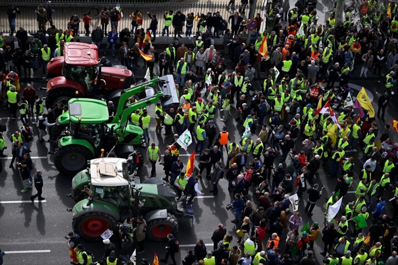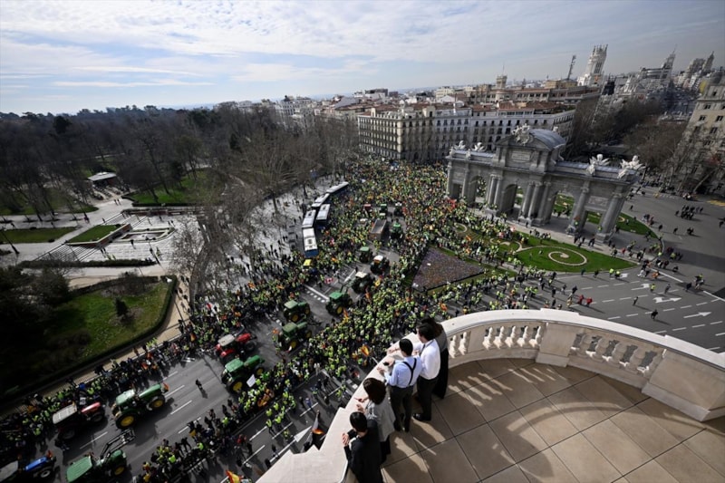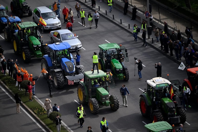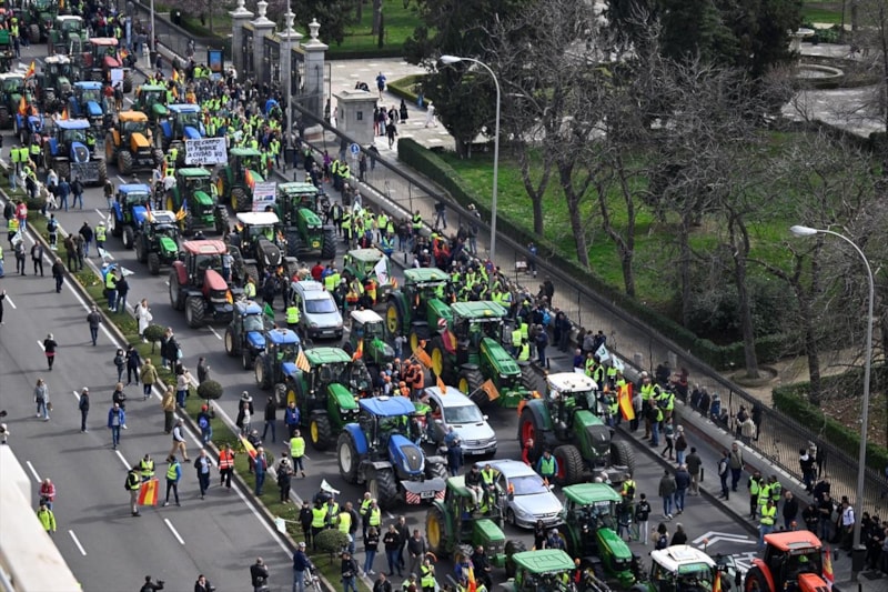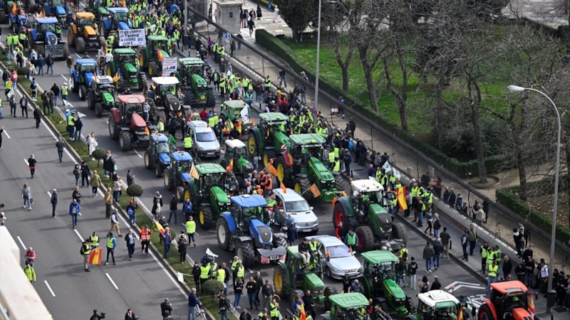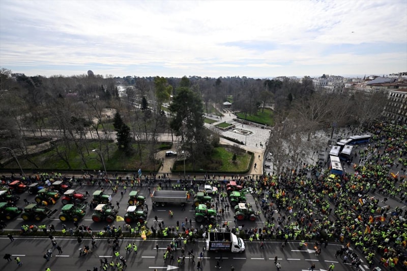 Başkent Madrid'de toplanan binlerce çiftçi, traktörleriyle yolları çevre yollarını kapatarak hükümete tepki gösterdi. Çiftçiler, tarladan çıkan ürünlere adil ücret talep ettiklerini belirtti.