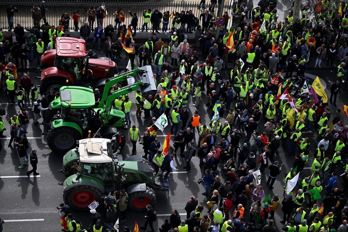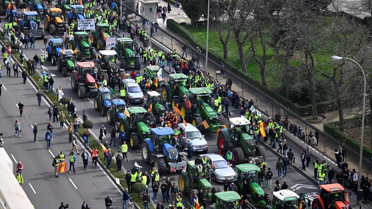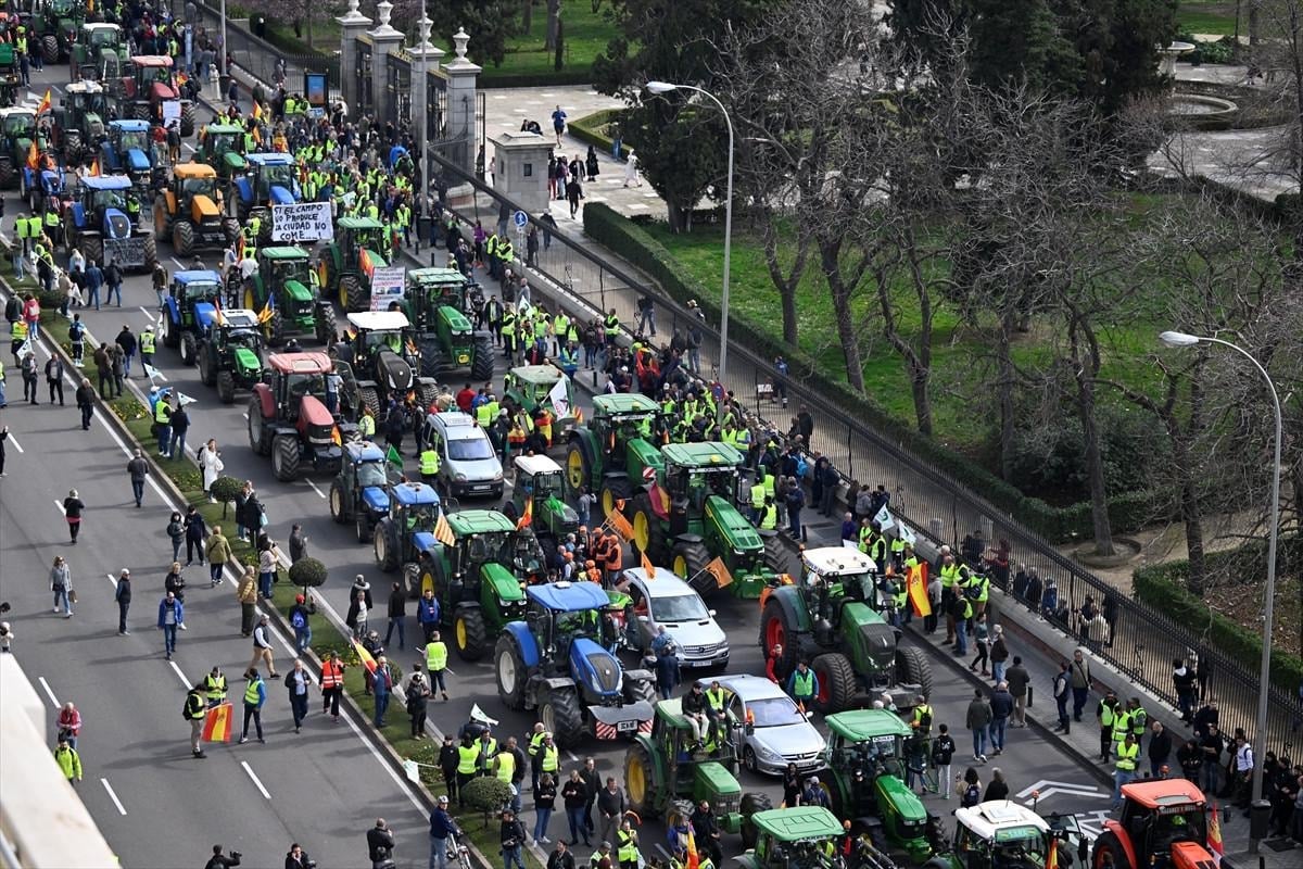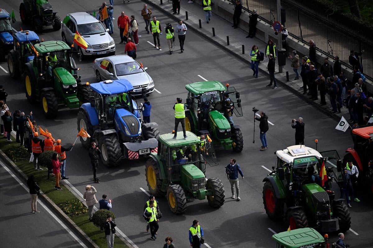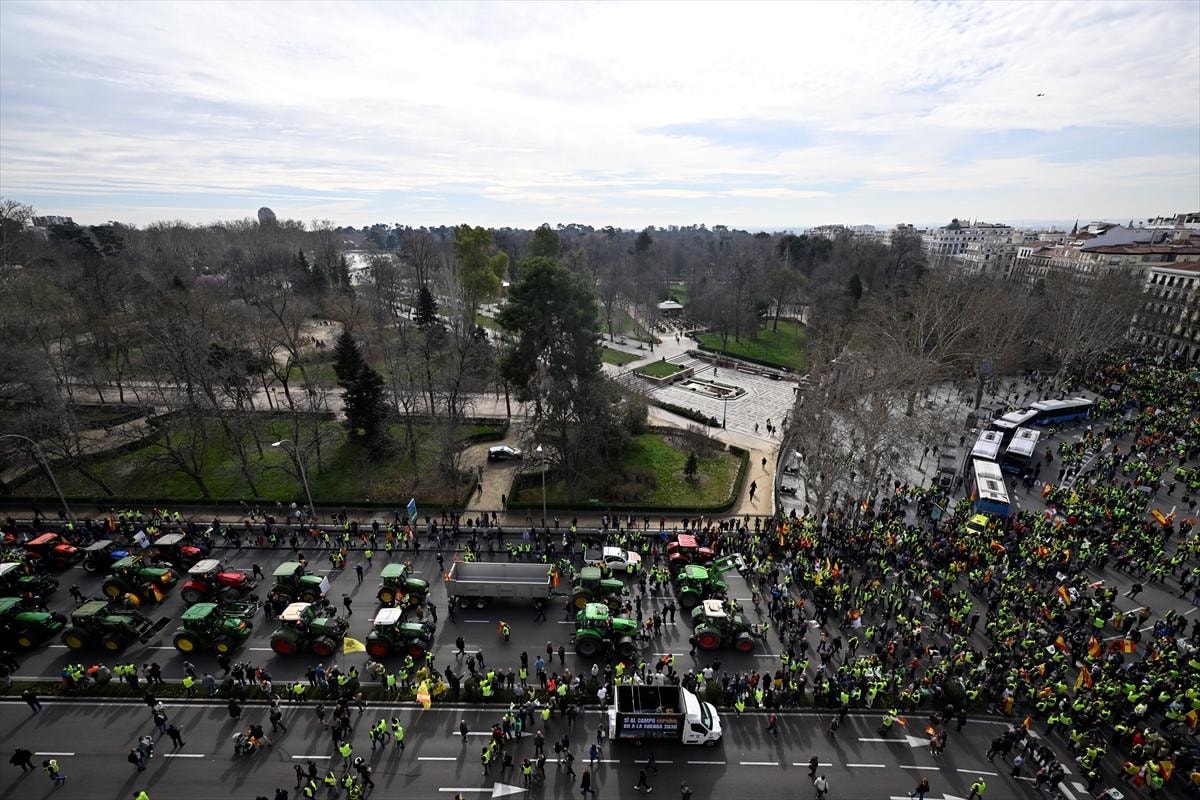 Yaklaşık 600 traktörün sadece 50'sinin kent merkezine girişine izin verilirken, traktörleriyle kent dışarıda kalan çiftçiler, Madrid'in çevre yollarını trafiğe kapattı.