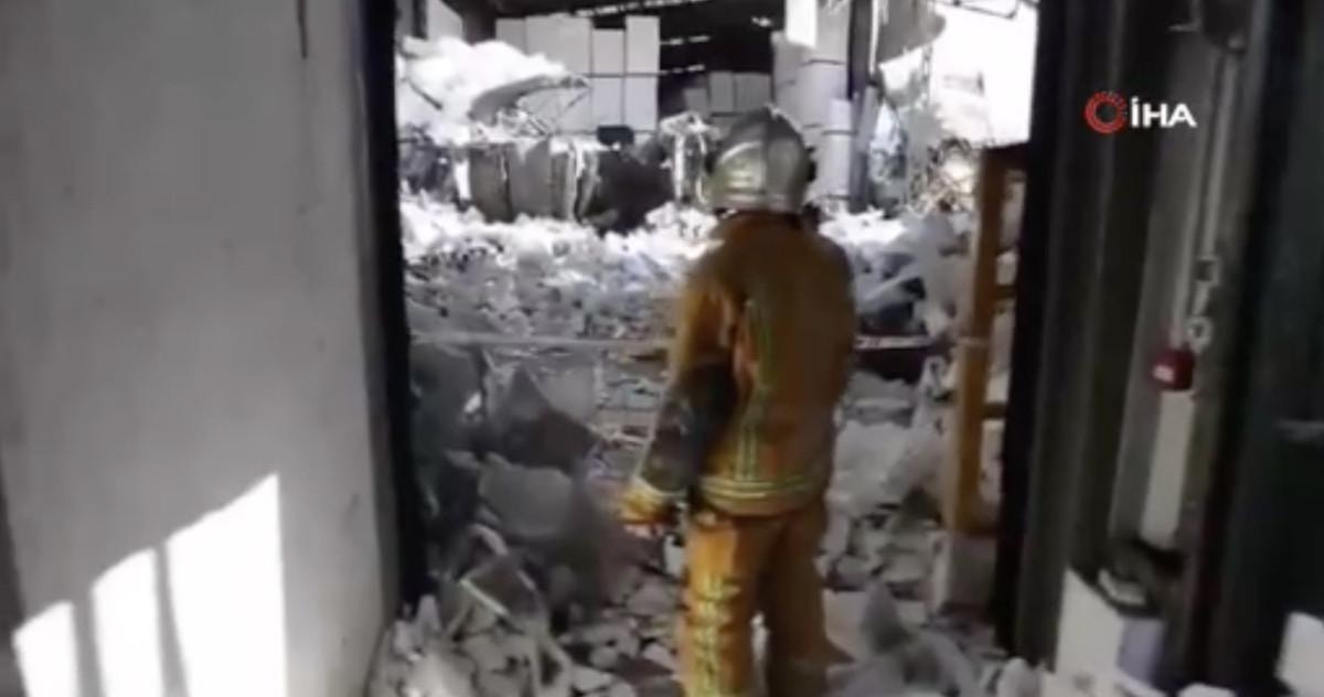 Patlamanın şiddetiyle çatı ve duvarların bir kısmı yıkıldı.