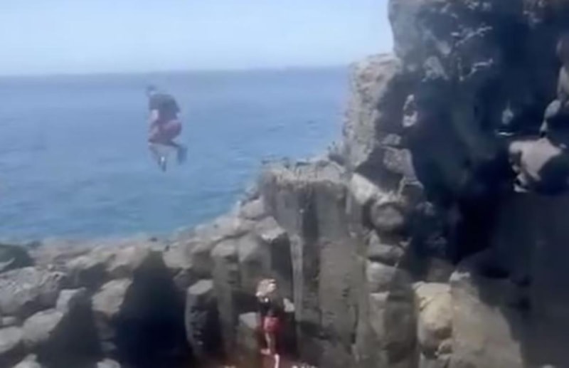 Turist, yüksek bir noktadan atlarken, kayalara çarpma ihtimalini hesaba katmadı.