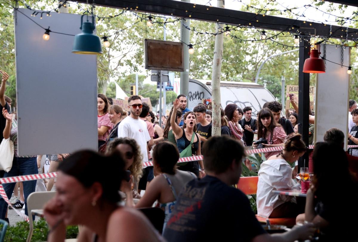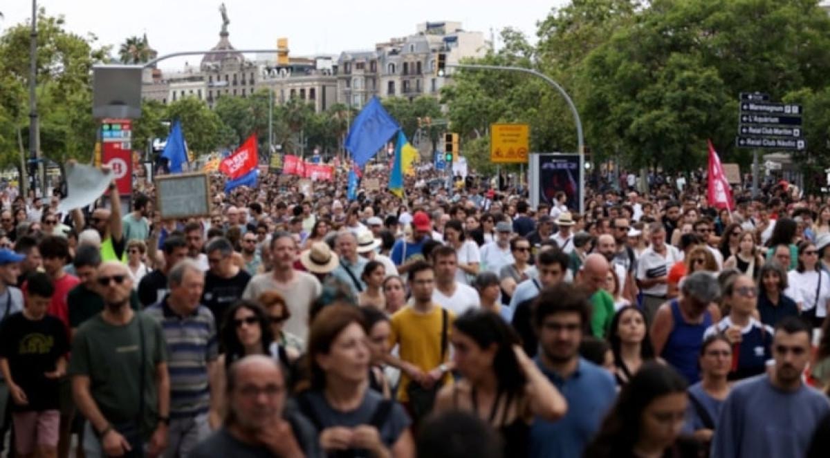 Pankartlarla Barcelona sokaklarında tur atan halk, turistlerin yoğun olduğu otel ve restoranların önünde slogan attı.