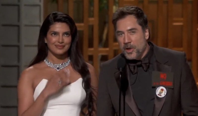 En İyi Yabancı Film Ödülü'nü sunan İspanyol oyuncu Bardem, İran'a yapılan saldırıları protesto etmek için sahneye ‘Savaşa Hayır’ rozetiyle çıktı ve konuşmasında Filistin’e destek vererek, "No to war. Free Palestine" (Savaşa Hayır. Özgür Filistin) dedi.