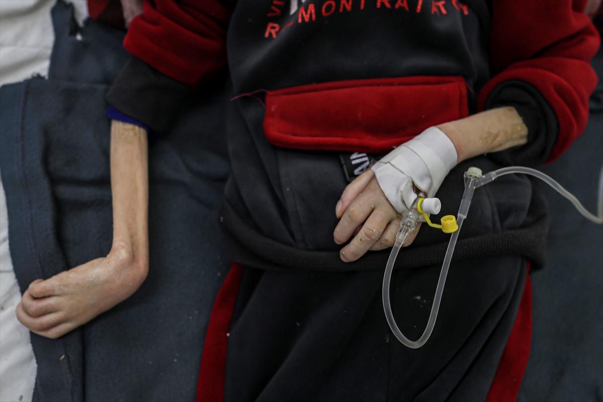 Yetersiz beslenme sorunu yaşayan 10 yaşındaki Filistinli Yezen Al-Kfarna, Refah kentindeki Ebu Yusuf El-Neccar Hastanesi'nde kısıtlı imkanlarla tedavi görüyor.