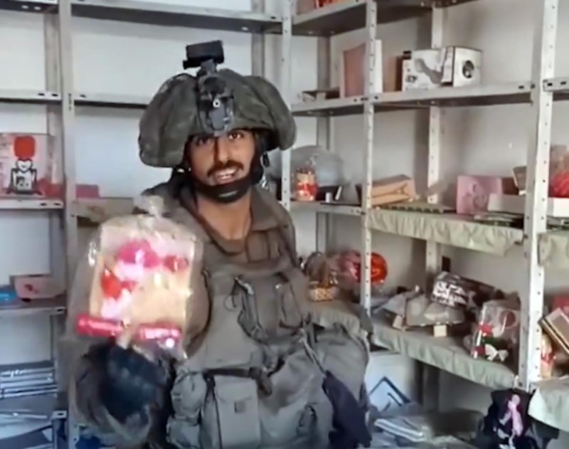 Gazze'yi yerle bir eden İsrail ordusuna mensup bir asker, girdiği dükkanda ortalığı birbirine kattı. İsrailli asker, eline aldığı ne varsa yere fırlattı.
