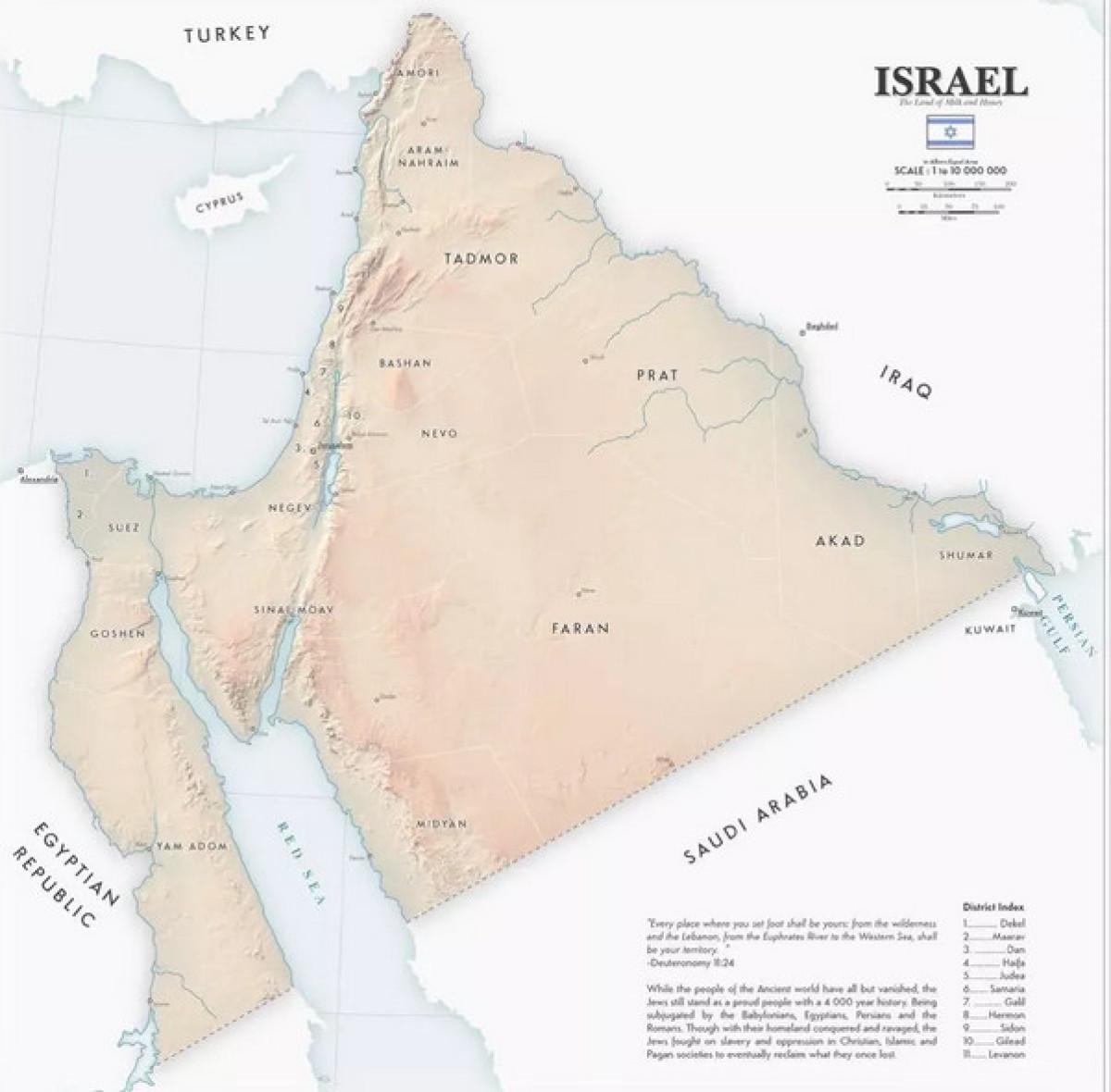 Günümüzde ise vadedilmiş topraklar Mısır, Irak, Suriye, Lübnan, Suudi Arabistan, İran'ın bir bölümü ve Türkiye'nin de güneyini kapsıyor.