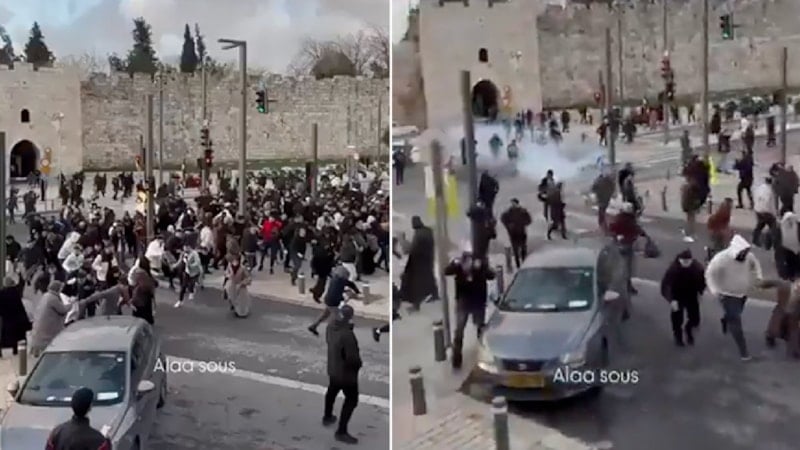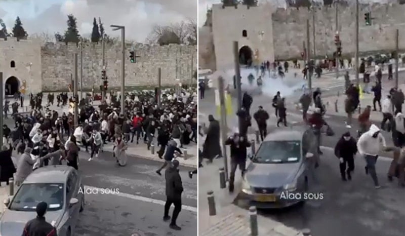 Selahaddin Caddesi'nde toplanan ve Sahire Kapısı'ndan Eski Şehir'e girerek Mescid-i Aksa'ya yürümek isteyen Filistinlilere, İsrail polisi müdahale etti.
