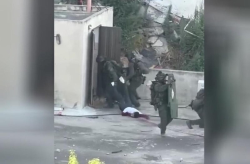 Sosyal medyada paylaşılan görüntülerde, İsrail askerlerinin öldürdükleri Filistinliyi kanlar içinde sürükleyerek cesedine el koydukları görüldü.