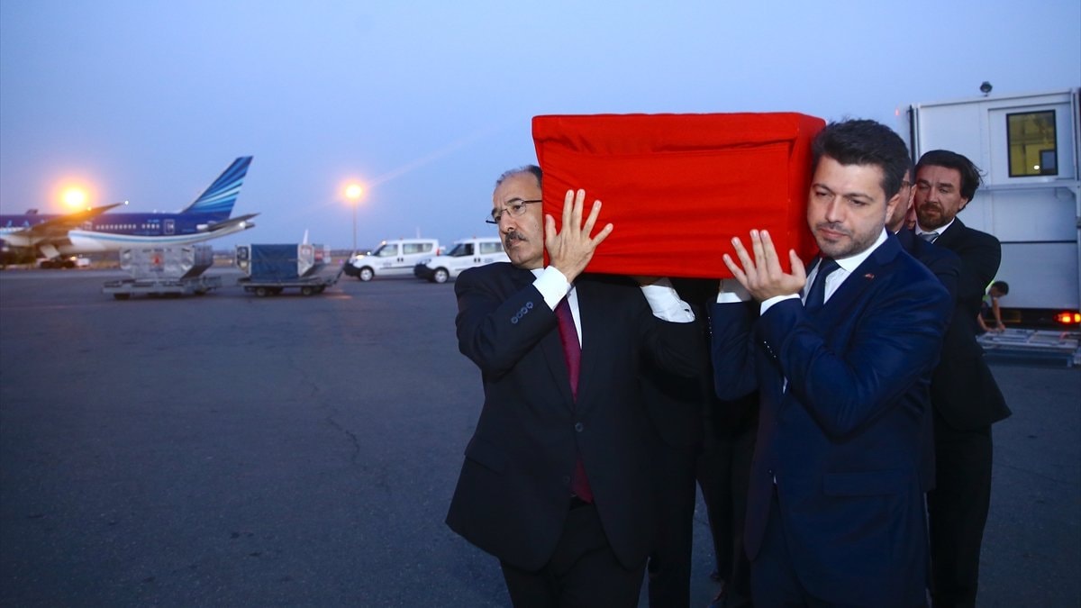 Bakü'de Türk bayrağına sarılan naaş, THY İstanbul uçağına teslim edildi ve Türkiye'ye uğurlandı.