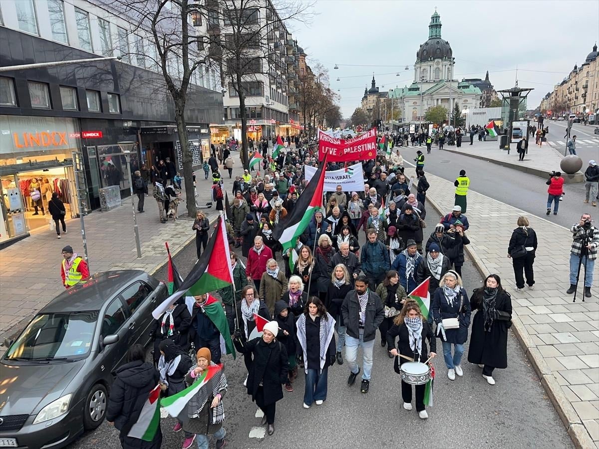 - İsveç'in Stockholm kentinde düzenlenen protesto gösterisinde, İsrail'in saldırıları kınandı ve İsveç'in İsrail'e silah satışını durdurması talep edildi.