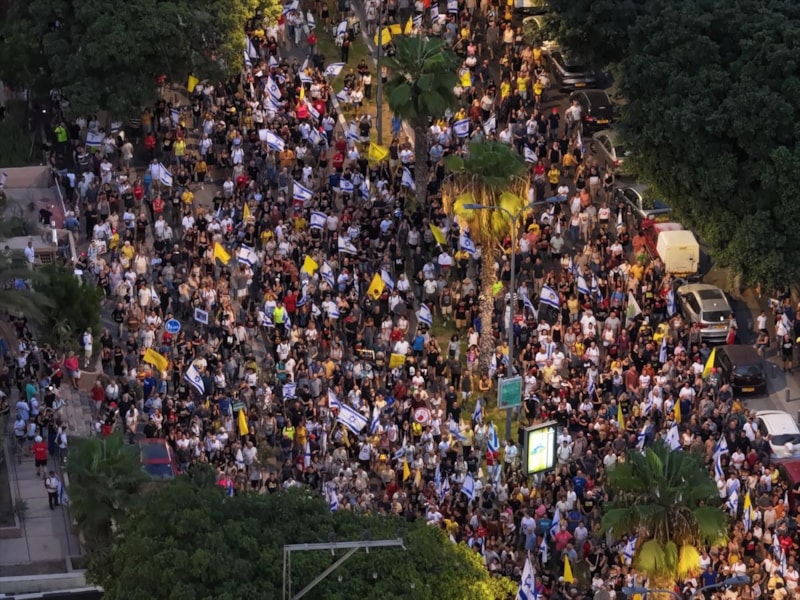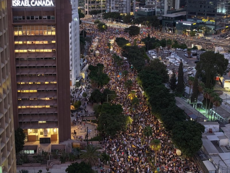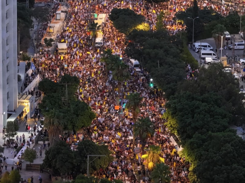 Güvenlik Kabinesi'nin Gazze kentini işgal kararı sonrası Netanyahu hükümetinin derhal ateşkes ve esir takası anlaşması imzalaması talebiyle haftanın ilk iş günü yapılan genel grevde halk, başta Tel Aviv olmak üzere pek çok kentte gösteriler düzenliyor.