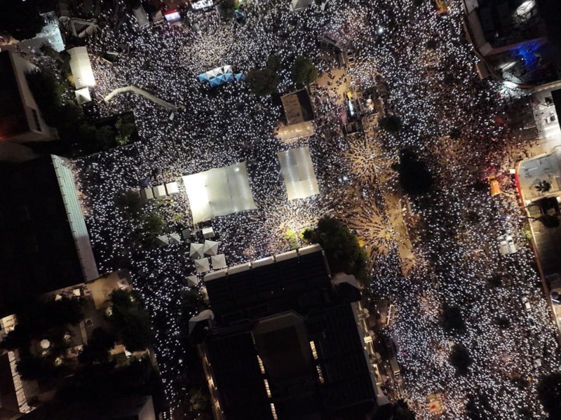 İsrail polisinin istatistiklerine yer verilen açıklamada, Tel Aviv'de "Rehineler Meydanı" adı verilen alanda 150 bin kişinin bulunduğu ve Savidor Tren İstasyonu'ndan 70 bin civarında göstericinin de meydana doğru yürüdüğü ifade edildi.
