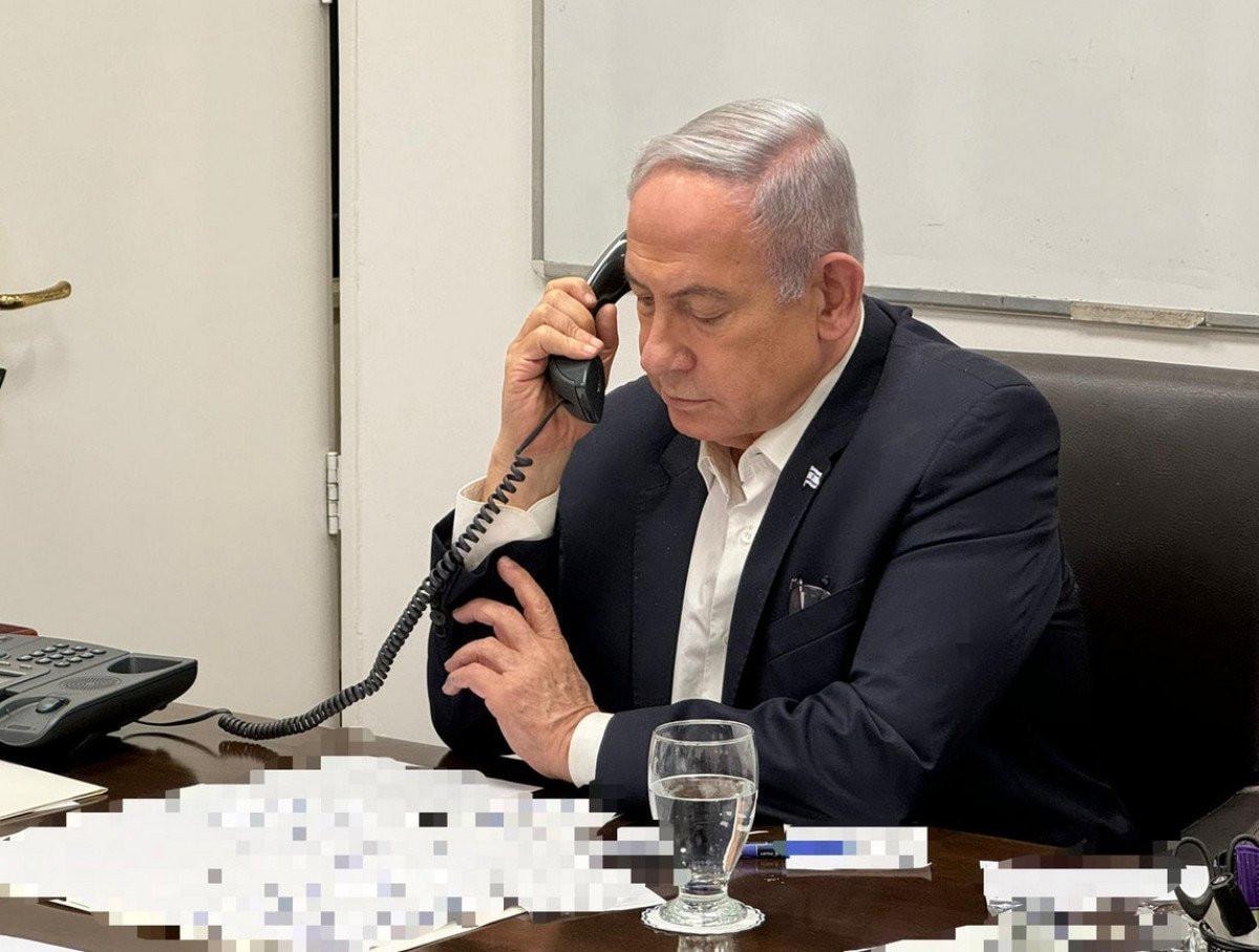 Görüşmenin içeriğine ilişkin detay verilmeyen paylaşımda, Netanyahu'nun telefon görüşmesi gerçekleştirdiği bir fotoğraf yer aldı.