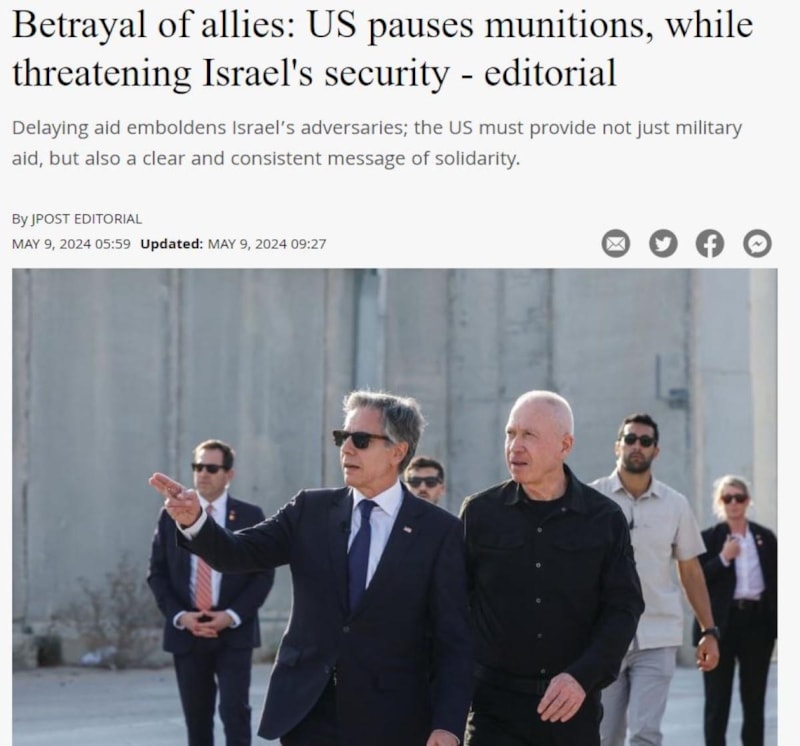 Jerusalem Post gazetesinin yayınladığı başyazıda, yardımın geciktirilmesinin İsrail'in düşmanlarını "cesaretlendirdiği" belirtildi.