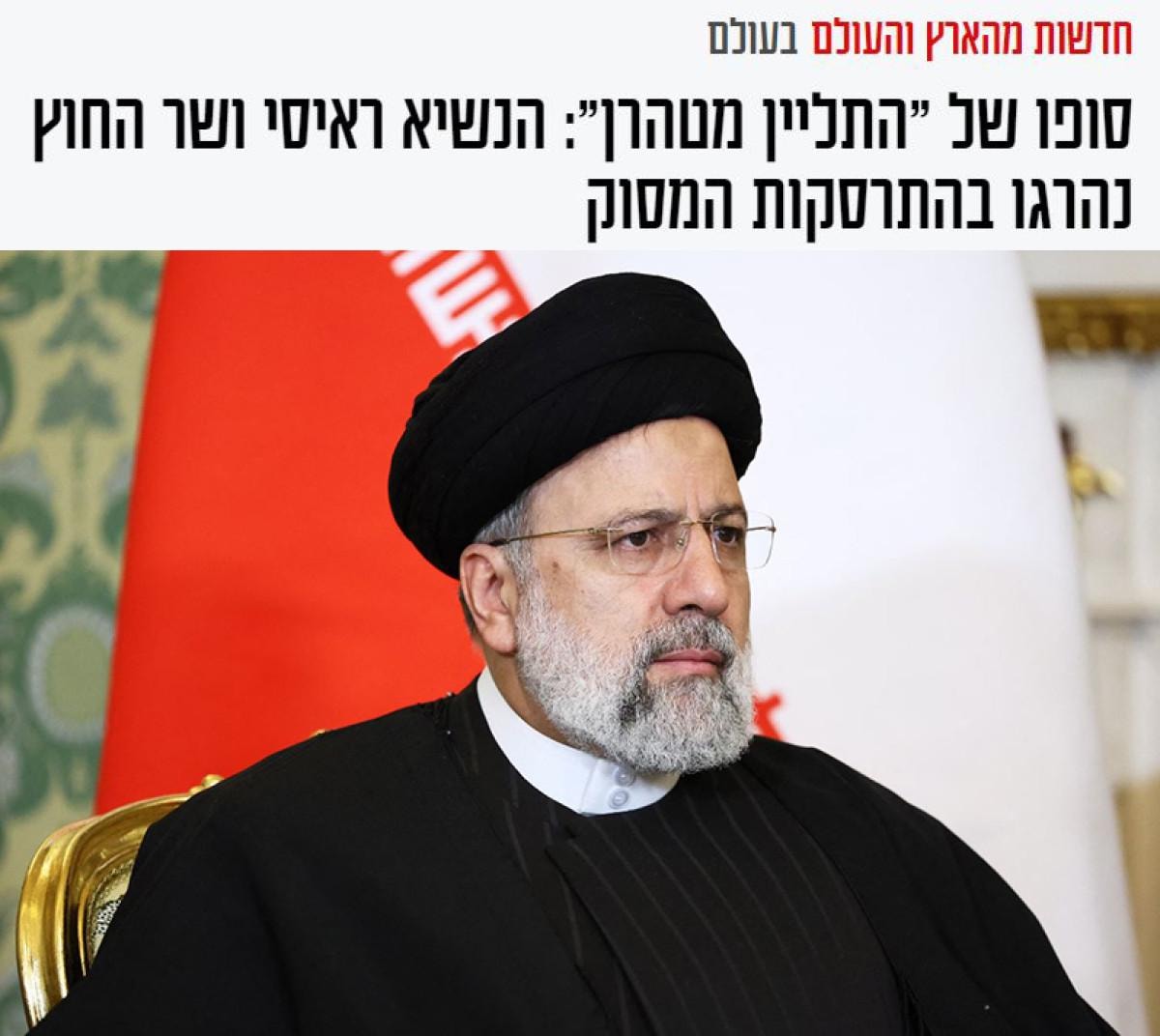 Ynet, "İran resmen açıkladı: Helikopter kazasında ülkenin Cumhurbaşkanı Reisi ve Dışişleri Bakanı öldü." diye yazdı.