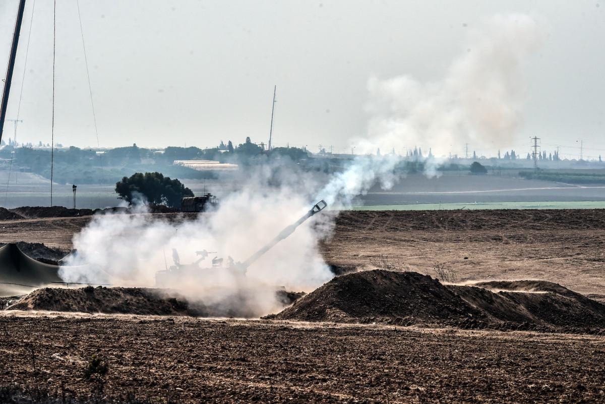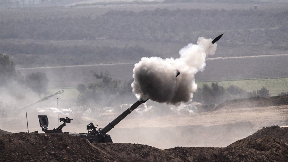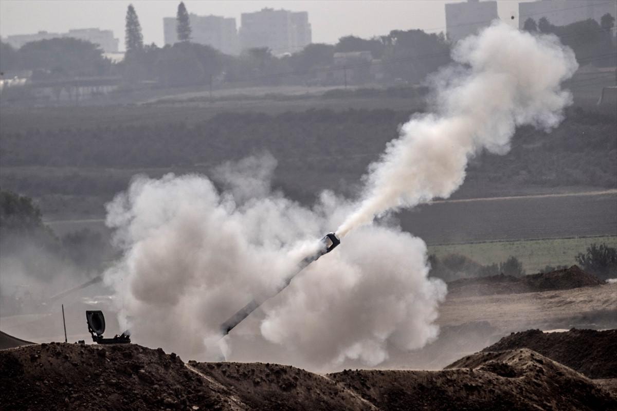 Sınır hattına konuşlu obüslerin Gazze’ye bombardımanı anbean kameralara yansıdı.