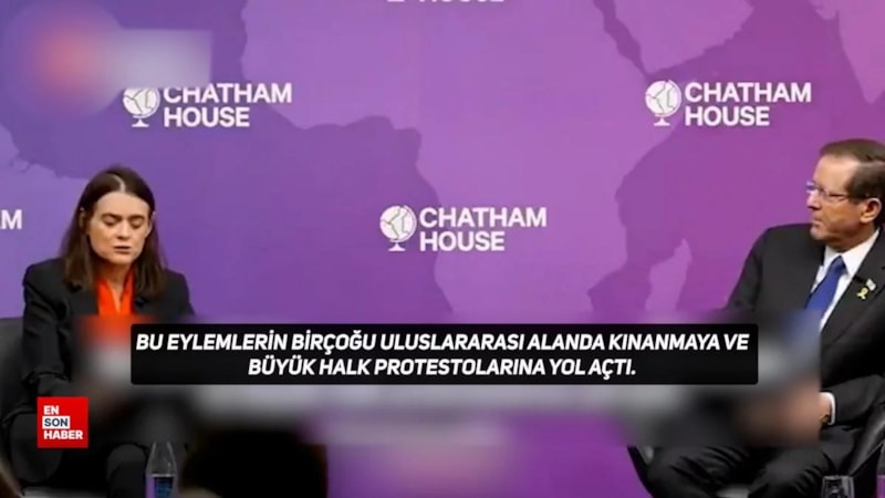 Londra ziyareti kapsamında konuşma yapacağı düşünce kuruluşu Chatham House'a gelişinde protestolarla karşılaşan Herzog, salonda ise konuşmasına başlamadan önce sunucunun İsrail'in eylemlerini sıraladığı sert bir girişle anons edildi.