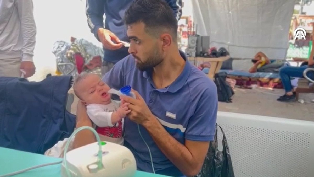 Sağlık sistemi de çökme noktasına gelirken, Filistinli bir babanın çaresiz anları kameraya yansıdı.