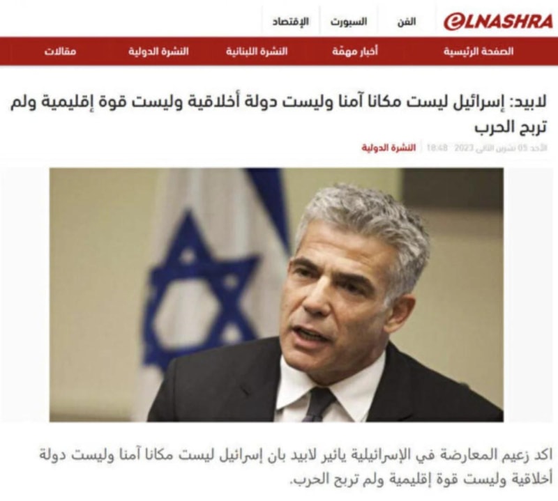 İsrail'in eski başbakanı Yair Lapid, Mısır basınına yaptığı açıklamada işgalci İsrail ordusunun Gazze Şeridi'ne yönelik saldırılarına değindi.