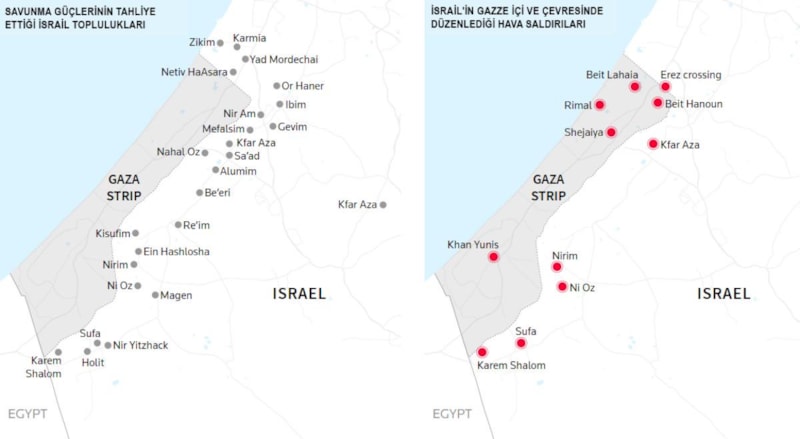 Geçen hafta başlayan saldırılar sonrası Gazze ve çevresinde silah sesleri susmuyor. Çatışmaların başladığı andan bugüne yaşananlar harita üzerinde gösterildi.
