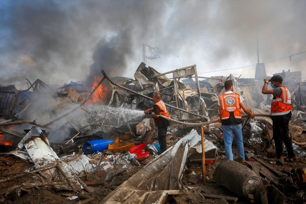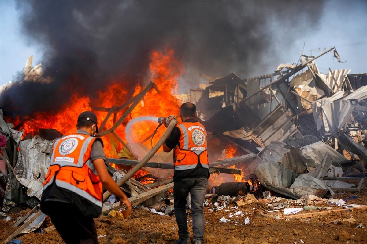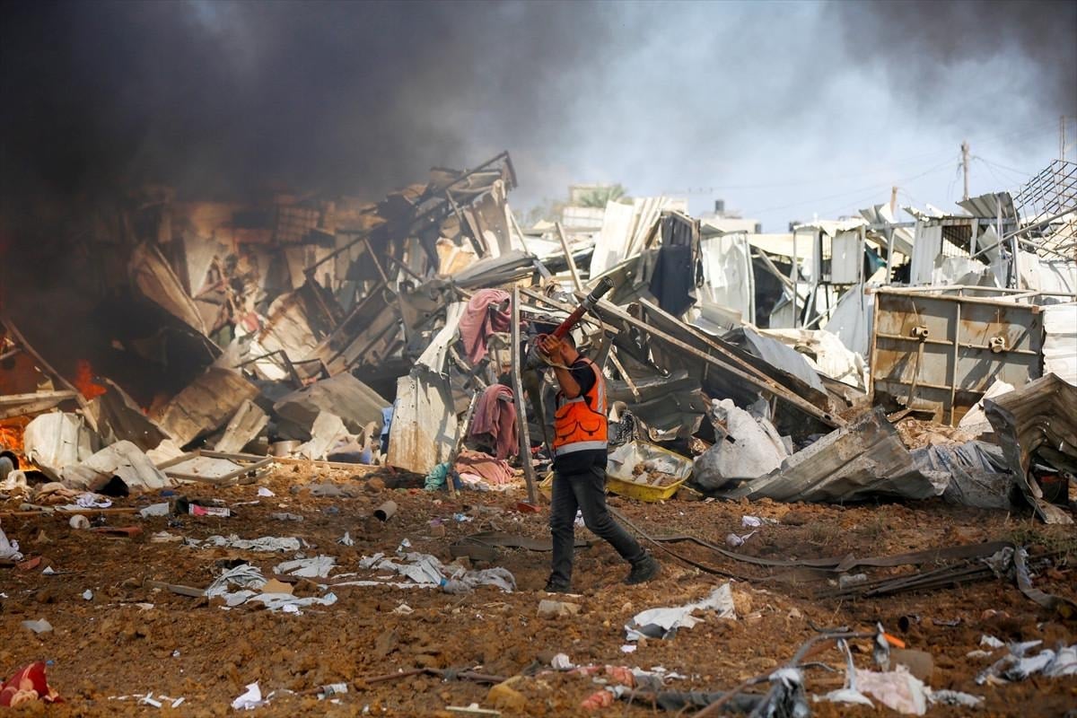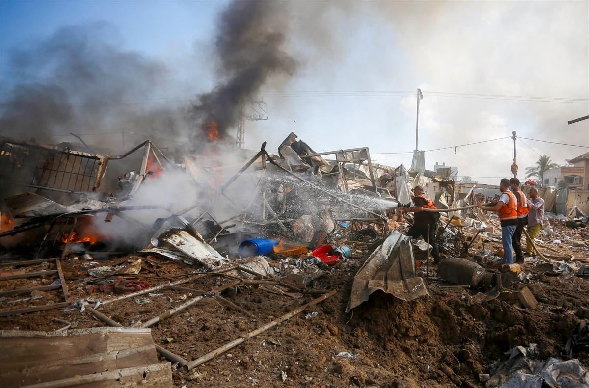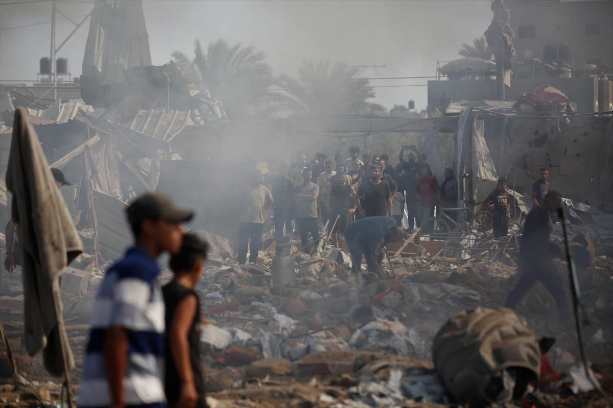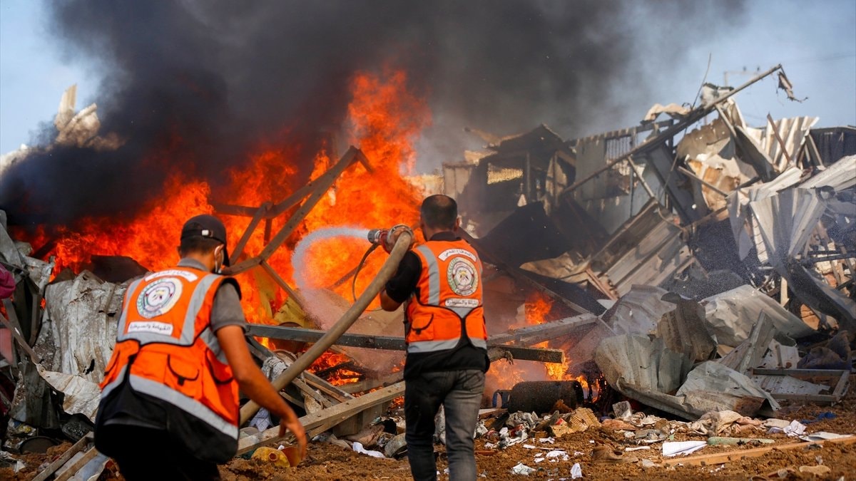 İsrail savaş uçakları sabah saatlerinde Deir el-Balah'taki yerlerinden edilmiş 200 ailenin yaşadığı "El-Menasra" kampını vurdu.