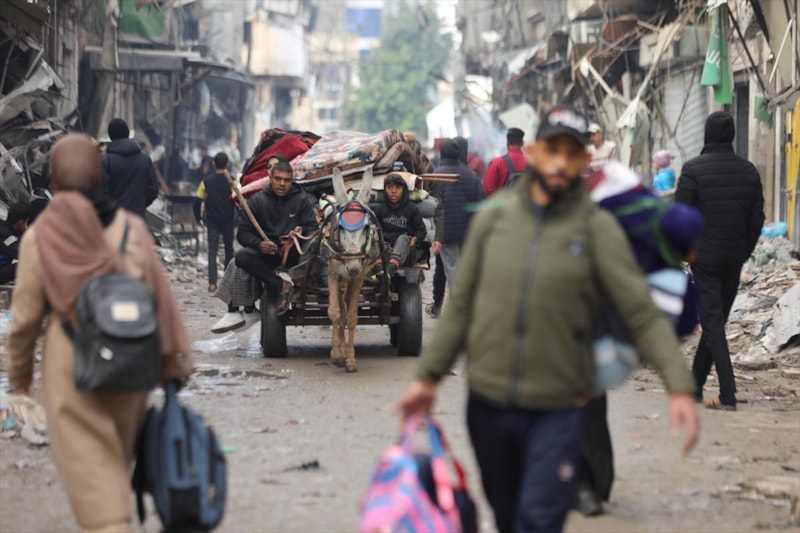 Filistinlilerin geçtiği sokaklarda İsrail saldırıları nedeniyle oluşan yıkımın boyutları dikkati çekti.