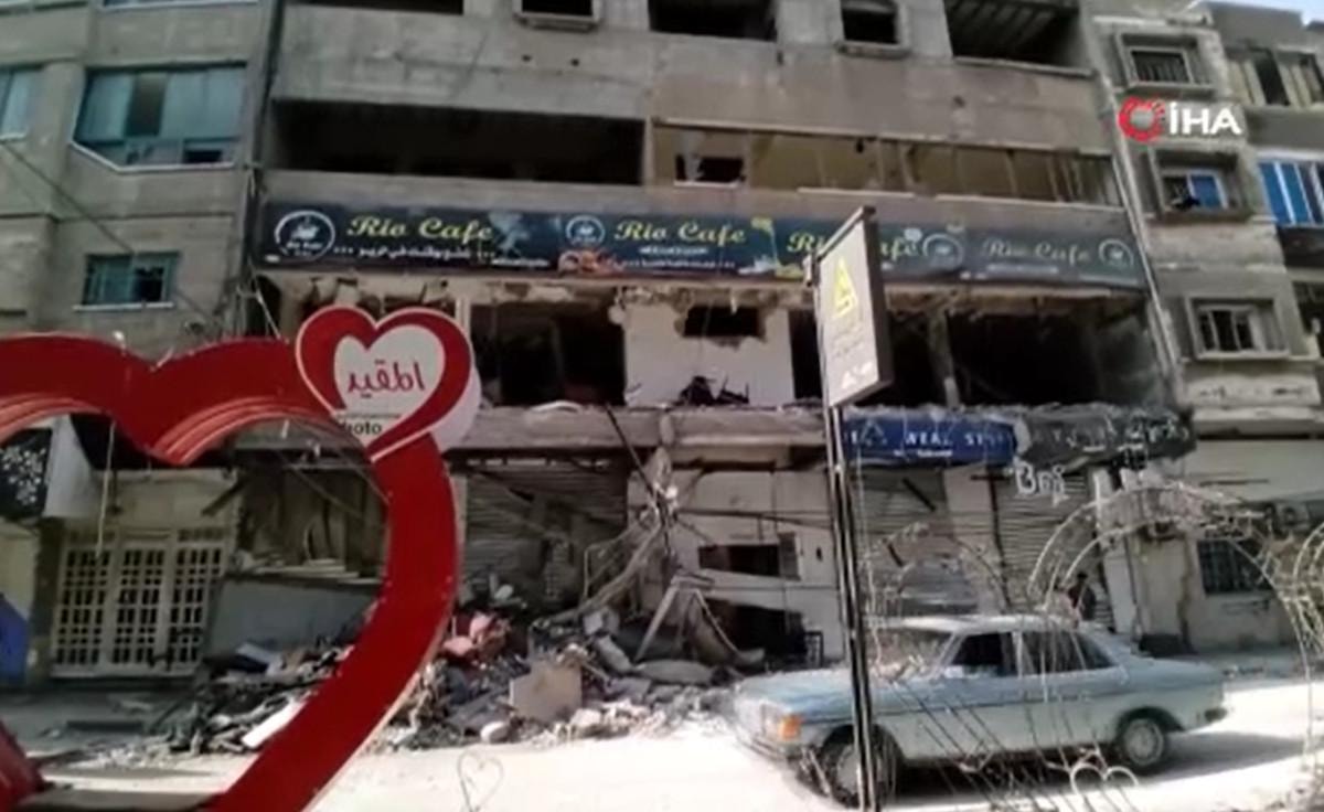 İsrail’in cumartesi gecesi boyunca düzenlediği hava saldırılarında vurduğu kafe yerle bir oldu.