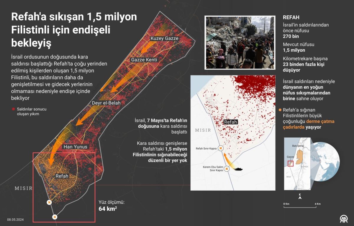 İsrail'in Refah'a kara saldırısını genişletmesi halinde 1,5 milyon Filistinlinin sığınabileceği altyapının olduğu bir yer bulunmuyor.