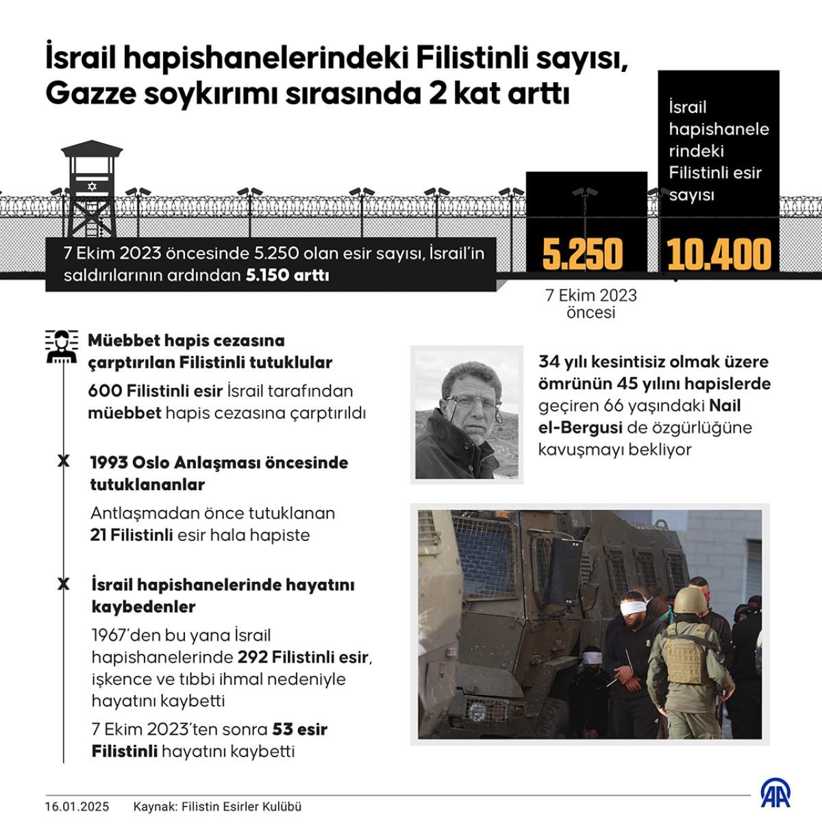 Anlaşma sonrasında aralarında yaklaşık 45 yıl hapiste tutulan 66 yaşındaki Nail el-Bergusi gibi 10 bini aşkın Filistinlinin akıbeti merak ediliyor.