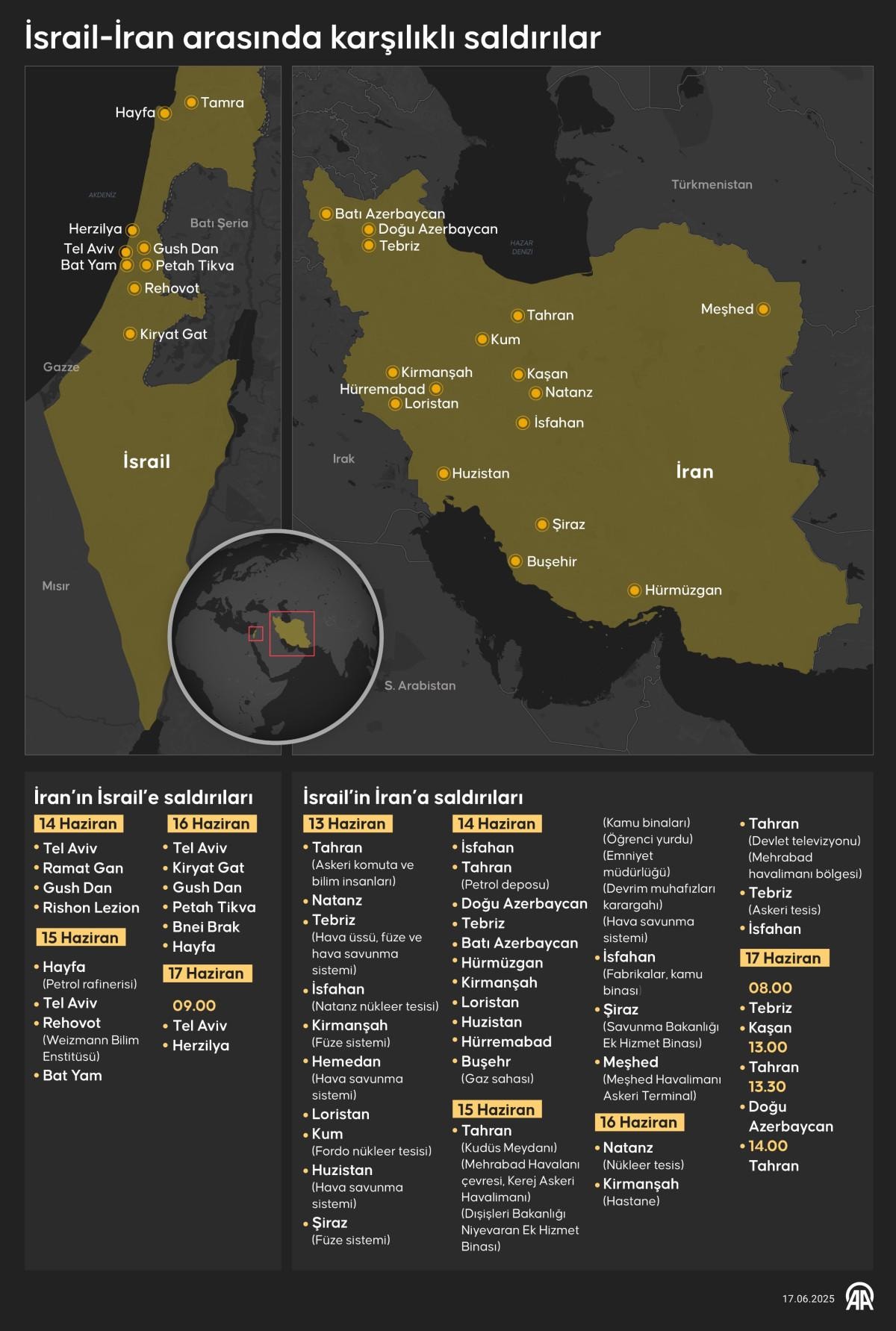 Her geçen gün yeni gelişmelerin yaşandığı çatışmalarda, 13 Haziran’dan bu yana karşılıklı hedef alınan yerler de şu şekilde sıralandı: