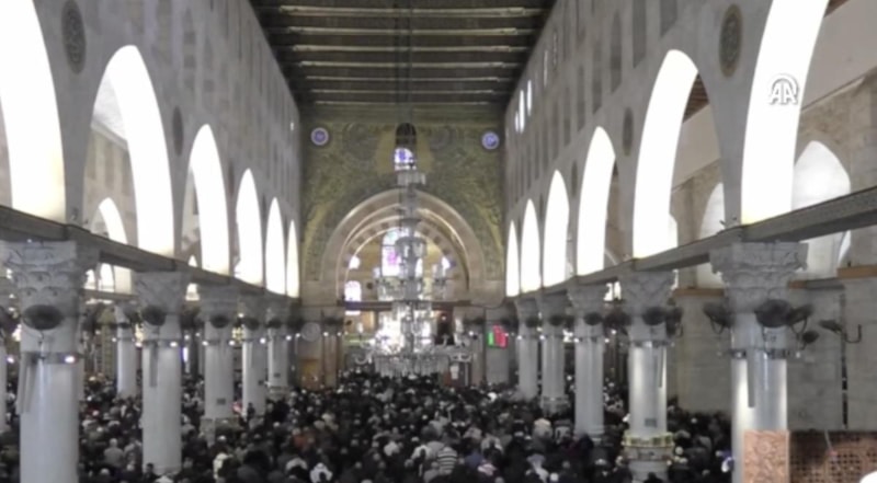 Buna rağmen işgalciye orduya boyun eğmeyen Filistinliler, Mescid-i Aksa'ya akın etti.