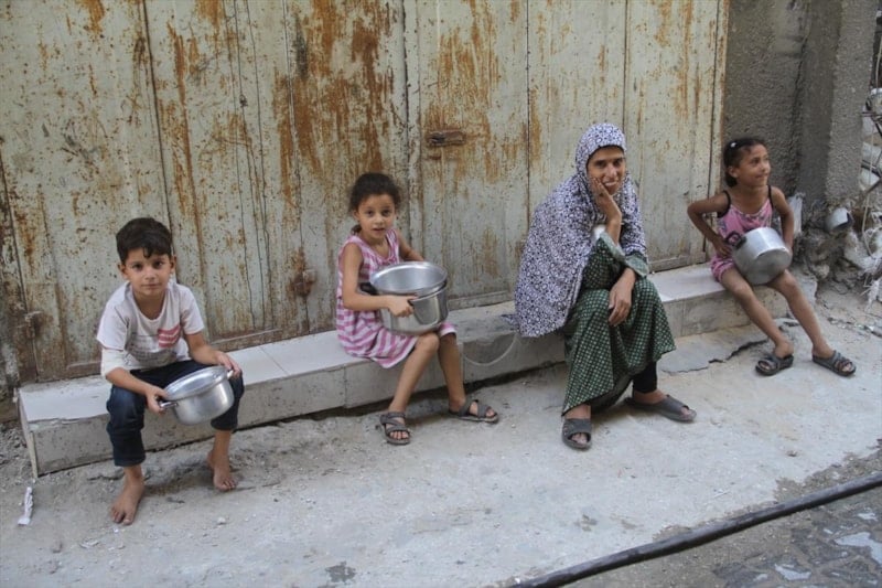 İnsanları genç yaşlı, çocuk kadın demeden katleden İsrail'in ablukası ve sınır kapılarını kapatarak yardım girişlerini engellemesi nedeniyle Gazzeliler, uzun süredir açlıkla mücadele ediyor.