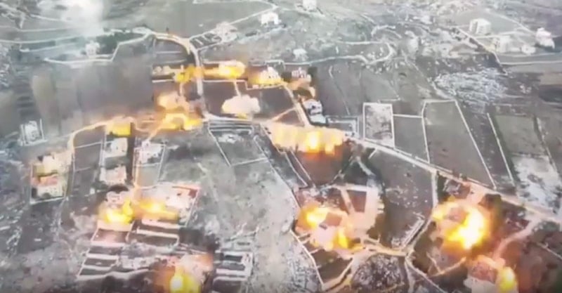 İsrail ordusu, sınıra yakın bir kasabanın tamamını patlayıcılarla yıktı. Katil sürüsü o anlara ilişkin görüntüleri de servis etti.