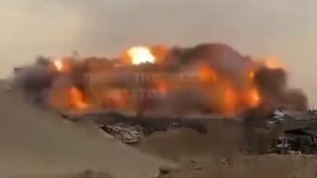 Videoda, parlamento binasının büyük bir patlamayla yıkıldığı, havaya yoğun toz bulutlarının yükseldiği görülüyor.