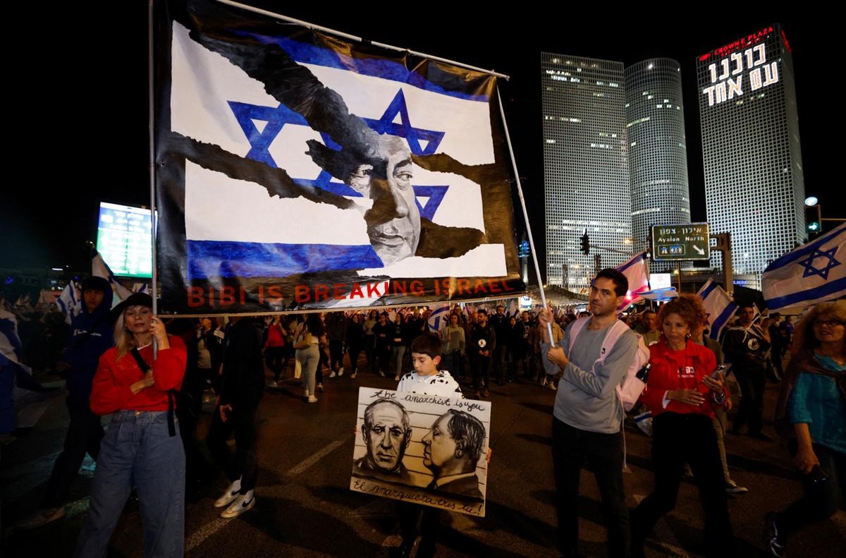 Netanyahu başbakanlığındaki koalisyon hükümetinin, yargının yetkilerini kısıtlayan ve iktidarın yargı atamalarında söz sahibi olmasını öngören "yargı reformu", ülke genelinde 12 haftadır protestolara neden olurken, düzenlemenin durdurulması çağrısında bulunan Savunma Bakanı Yoav Gallant'ın pazar akşamı görevden alınması bardağı taşıran son damla oldu.