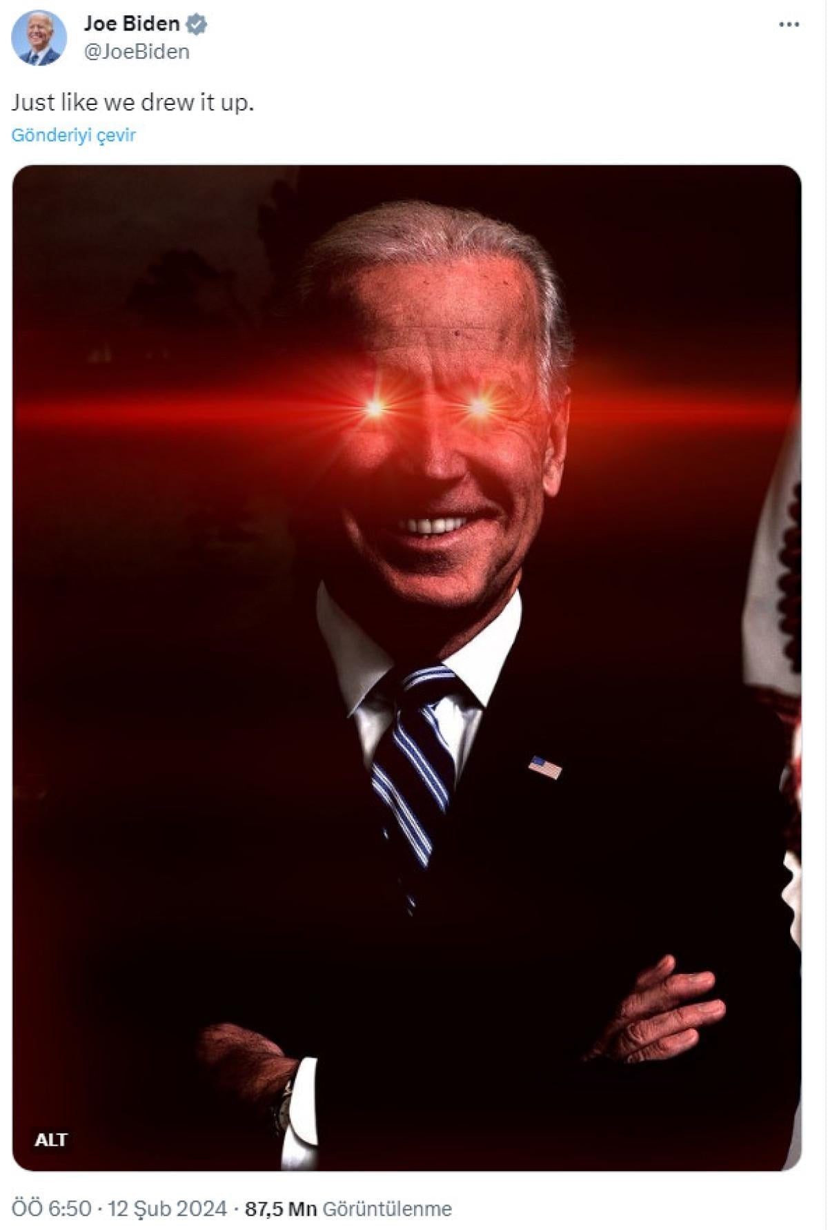 Öte yandan aynı saatlerde ABD Başkanı Joe Biden, efekt uygulanan bir fotoğrafını resmi X hesabından paylaştı.