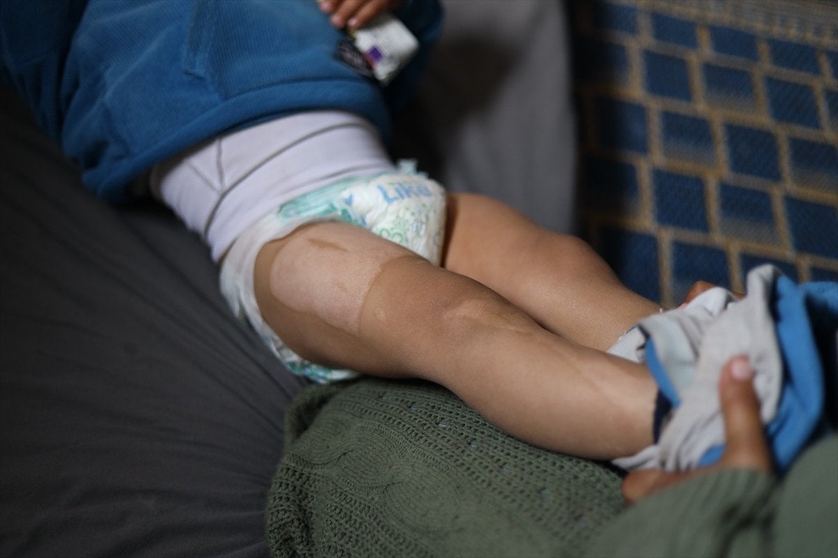 - İsrail'in Gazze'ye düzenlediği saldırılarda yaralanan 18 aylık Muhammed Huceyle, ciddi yanıklarla tedavi bekliyor.